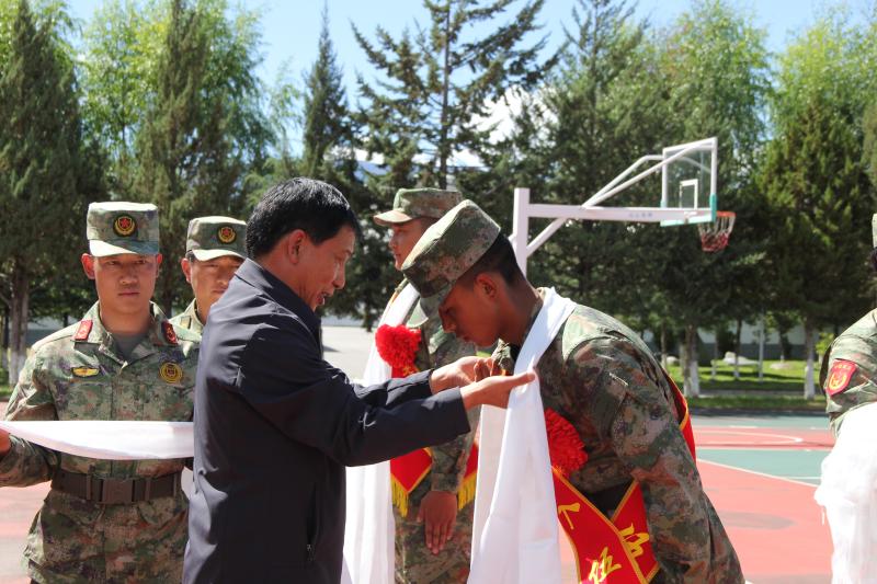 相關(guān)領(lǐng)導(dǎo)對(duì)入伍新兵表示熱烈祝賀,并為他們獻(xiàn)上潔白的哈達(dá)。希望新兵到部隊(duì)后迅速投入新生活,時(shí)刻嚴(yán)格要求自己,加強(qiáng)學(xué)習(xí)鍛煉,嚴(yán)守部隊(duì)紀(jì)律,苦練過硬本領(lǐng),努力把自己鍛煉成有靈魂、有本事,有血性、有品德的新一代革命軍人,在強(qiáng)軍征途上展現(xiàn)青春飛揚(yáng)的精彩人生;希望新兵不負(fù)重托,不辱使命,展示好迪慶兒女的風(fēng)采,以實(shí)際行動(dòng)為家鄉(xiāng)爭(zhēng)光,為部隊(duì)爭(zhēng)光,為祖國(guó)爭(zhēng)光。祝愿新兵在火熱的軍營(yíng)大熔爐中早日成才,早傳捷報(bào)。