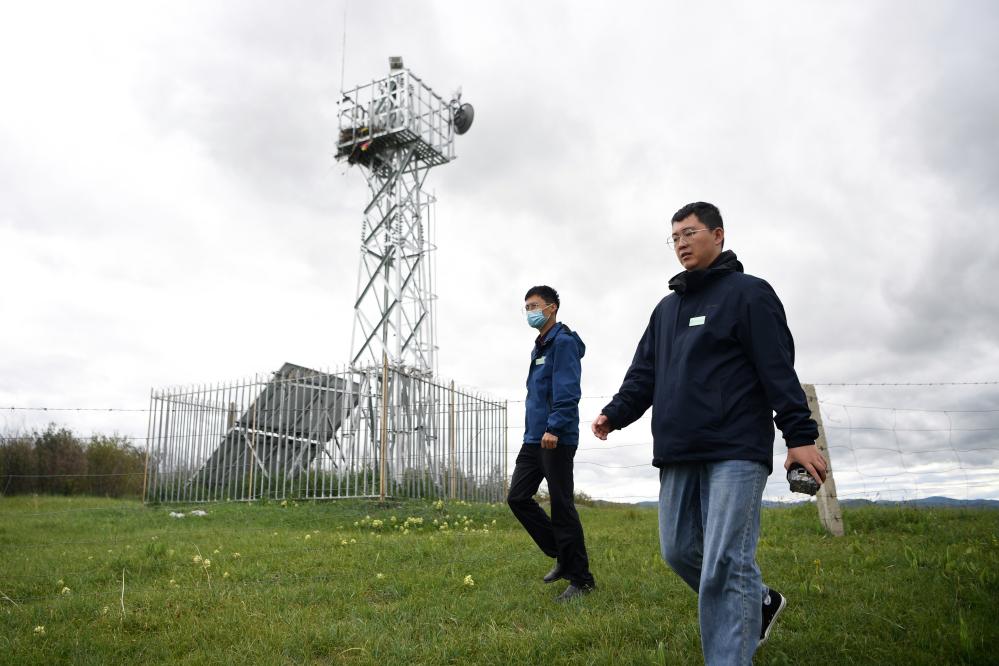 甘肅黃河首曲國家級自然保護(hù)區(qū)管護(hù)中心曼日瑪保護(hù)站的工作人員在保護(hù)區(qū)內(nèi)檢查紅外相機(jī)的工作情況。 新華社記者 方欣 攝