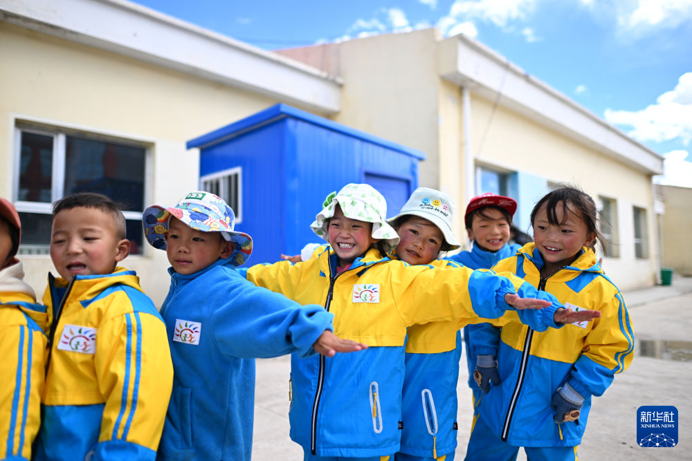 在青海省玉樹藏族自治州曲麻萊縣秋智鄉(xiāng)布甫村陽(yáng)光幼兒園,孩子們走出教室準(zhǔn)備開始戶外活動(dòng)(9月14日攝)。新華社記者 張宏祥 攝