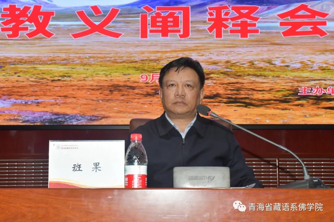 此次會(huì)議由青海省藏語(yǔ)系佛學(xué)院、三江源生態(tài)保護(hù)基金會(huì)、青海省藏傳佛教研究中心聯(lián)合舉辦。省委常委、省委統(tǒng)戰(zhàn)部部長(zhǎng)班果出席并講話,第十三屆全國(guó)人大民族委員會(huì)副主任、中央民族大學(xué)教授丹珠昂奔,三江源生態(tài)保護(hù)基金會(huì)理事長(zhǎng)鄧本太,中國(guó)藏學(xué)研究中心原副總干事洛桑靈智多杰,省政協(xié)副主席、省藏語(yǔ)系佛學(xué)院院長(zhǎng)仁青安杰等領(lǐng)導(dǎo)出席。