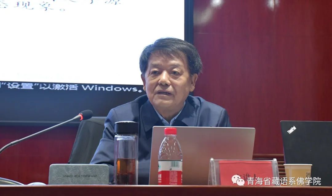 在分組研討中,50余位來(lái)自中國(guó)藏學(xué)研究中心、中國(guó)西藏文化保護(hù)與發(fā)展協(xié)會(huì)、中國(guó)西藏信息中心、三江源生態(tài)保護(hù)基金會(huì)、西南民族大學(xué)、青海師范大學(xué)、青海省藏傳佛教研究中心、青海省佛教協(xié)會(huì)的專家學(xué)者;中國(guó)藏語(yǔ)系高級(jí)佛學(xué)院、四川藏語(yǔ)佛學(xué)院、甘肅省佛學(xué)院、西藏佛學(xué)院的代表及經(jīng)師;塔爾寺等我省知名寺院的高僧大德、格西經(jīng)師;我省部分拓然巴和智然巴學(xué)銜獲得者等,共提交了37篇關(guān)于藏傳佛教與青藏高原生態(tài)保護(hù)方面的學(xué)術(shù)論文,共同圍繞藏傳佛教界深入學(xué)習(xí)貫徹習(xí)近平生態(tài)文明思想、藏傳佛教生態(tài)倫理觀對(duì)保護(hù)青藏高原生態(tài)環(huán)境的現(xiàn)實(shí)意義、藏傳佛教儀軌習(xí)俗在高原生態(tài)保護(hù)中的積極因素和消極影響、藏傳佛教保護(hù)生態(tài)、建設(shè)生態(tài)的優(yōu)良傳統(tǒng)與歷史、藏傳佛教界服務(wù)于生態(tài)文明建設(shè)的路徑及愿景等主題,進(jìn)行深入挖掘、深刻研討。學(xué)院全體師生300余人參加了研討會(huì)。