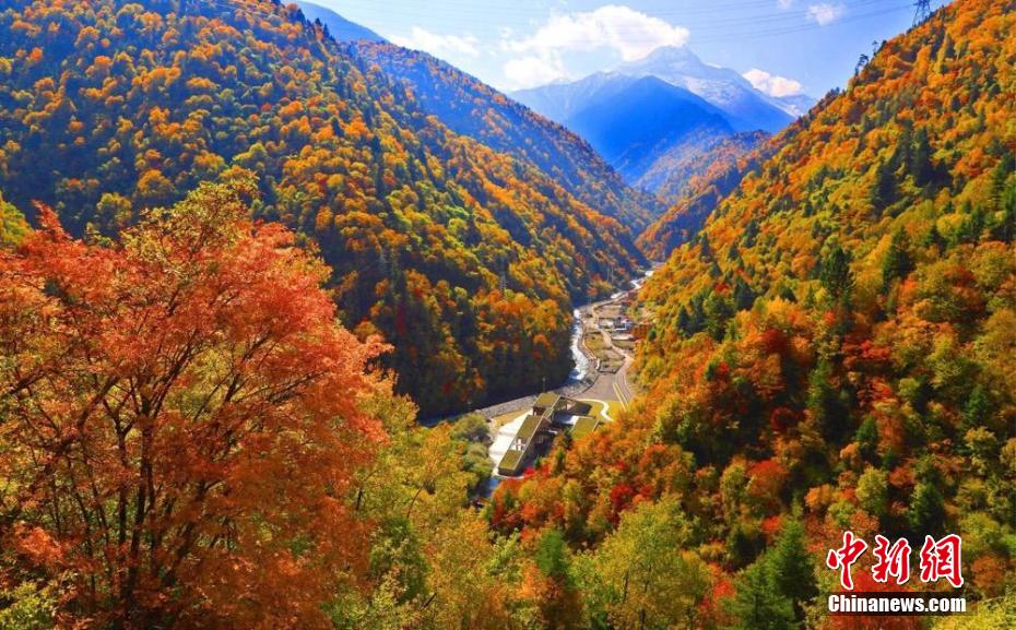據(jù)了解,黑水彩林主要由奶子溝、達古冰川、三奧雪山、卡龍溝、紅軍大峽谷“五溝”彩林組成,樹種為白楊樹、青岡樹、黑水花秋、鹽膚木等,總面積近3000平方公里。圖為黑水縣成片的彩林構成了一幅萬紫千紅、五彩繽紛的天然彩色畫卷。