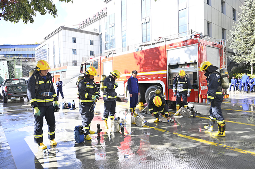 消防人員開展消防救援訓(xùn)練。 實習(xí)記者 賴強 攝