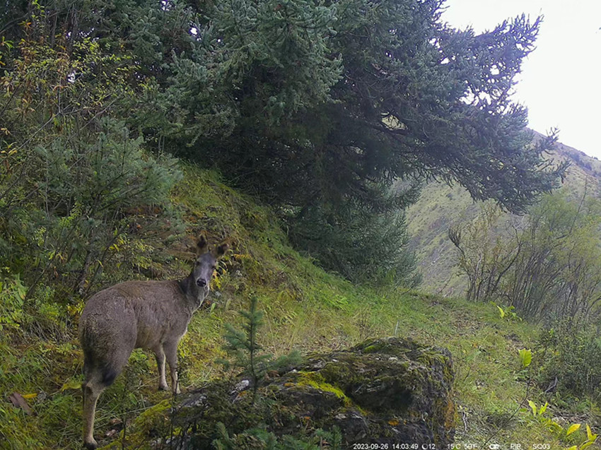 紅外相機影像資料顯示,一只金錢豹正走到石頭上眺望,一只棕熊媽媽正帶著幼崽經(jīng)過,一群白唇鹿在紅外相機前悠閑好奇的觀望……從肉食性、雜食性到植食性,野生動物們在鏡頭里的不時亮相,一定程度證明保護區(qū)內(nèi)生態(tài)系統(tǒng)功能健康,食物鏈結(jié)構(gòu)完整。
