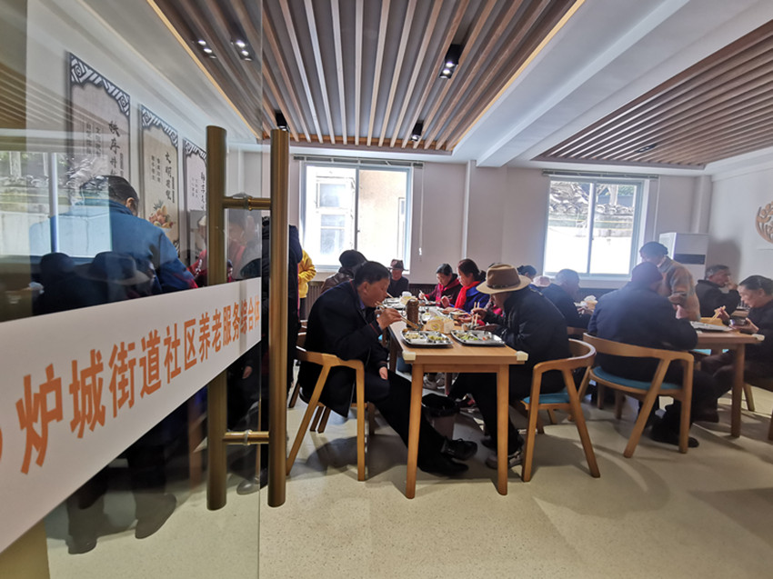 圖為社區(qū)的老年人在“長(zhǎng)者食堂”就餐。