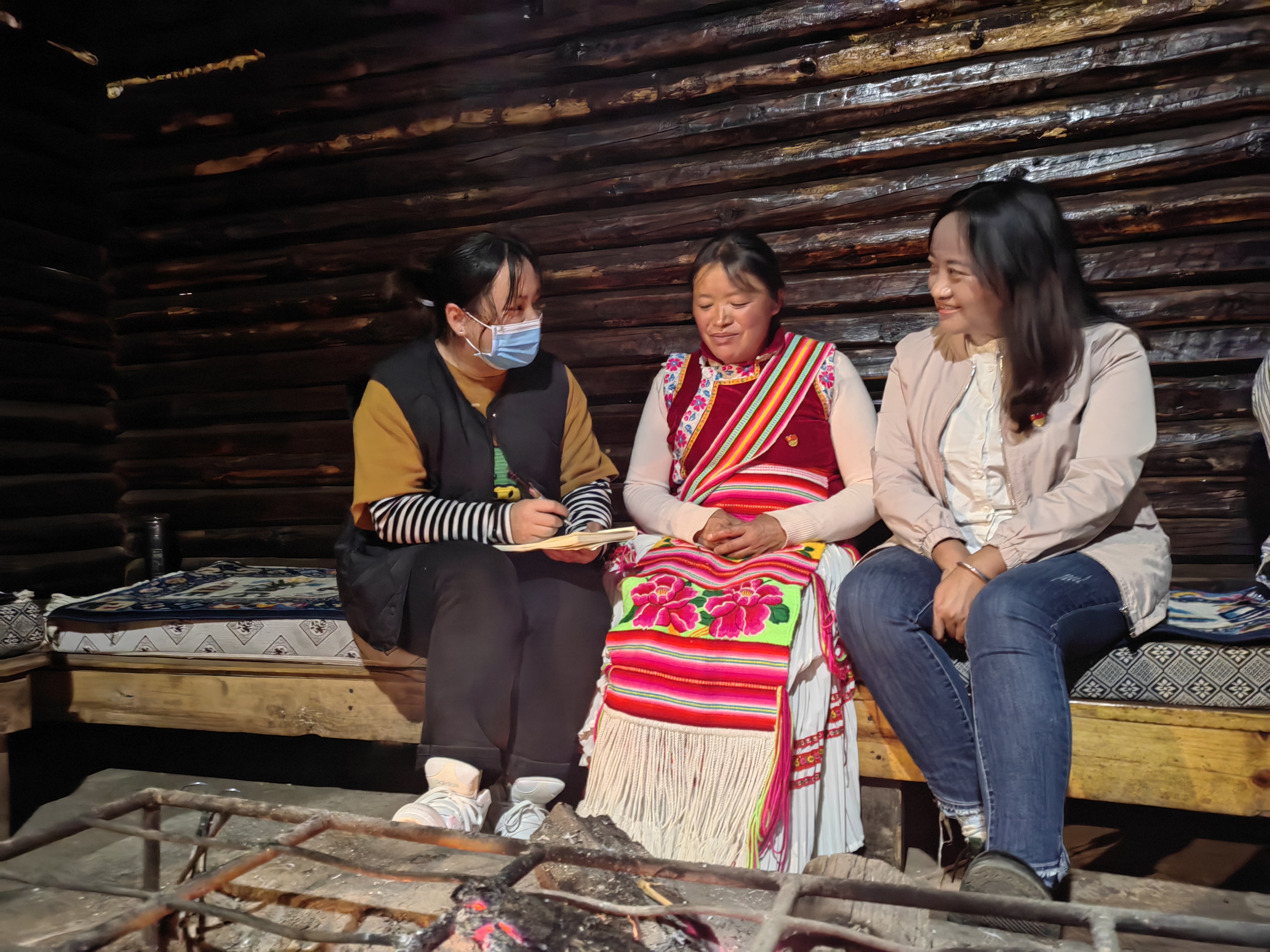 迪慶日?qǐng)?bào)社記者張燕深入基層采訪傈僳族婦女余海芝。