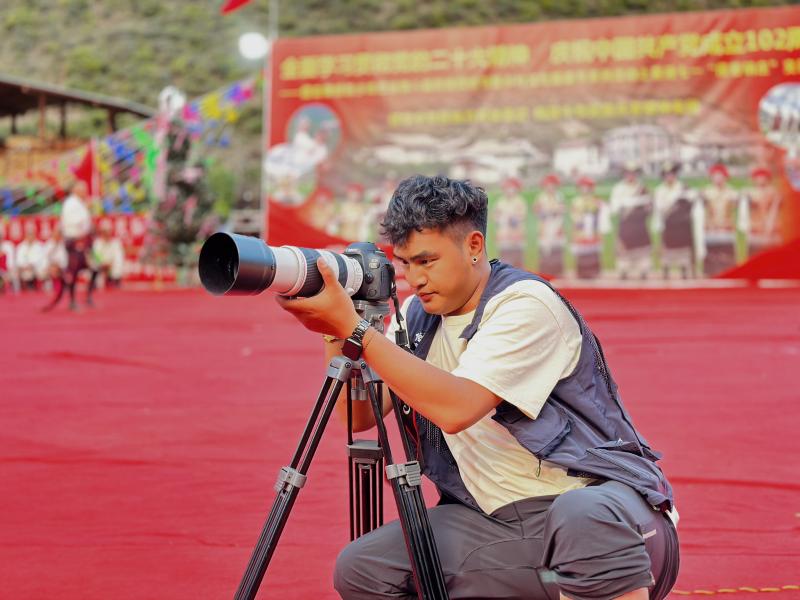 德欽縣融媒體中心記者李春雷在霞若鄉(xiāng)鍋莊節(jié)現(xiàn)場拍攝。