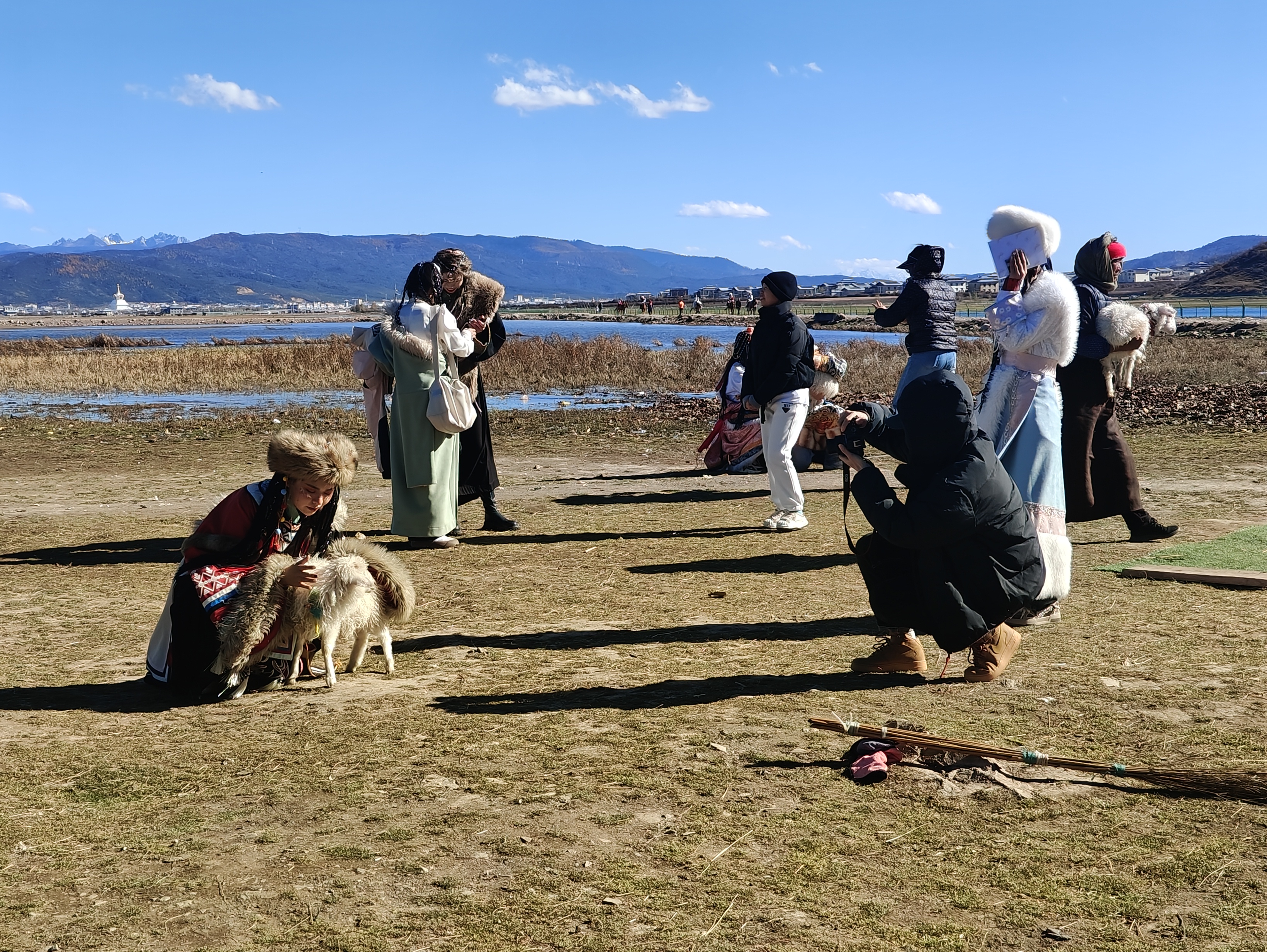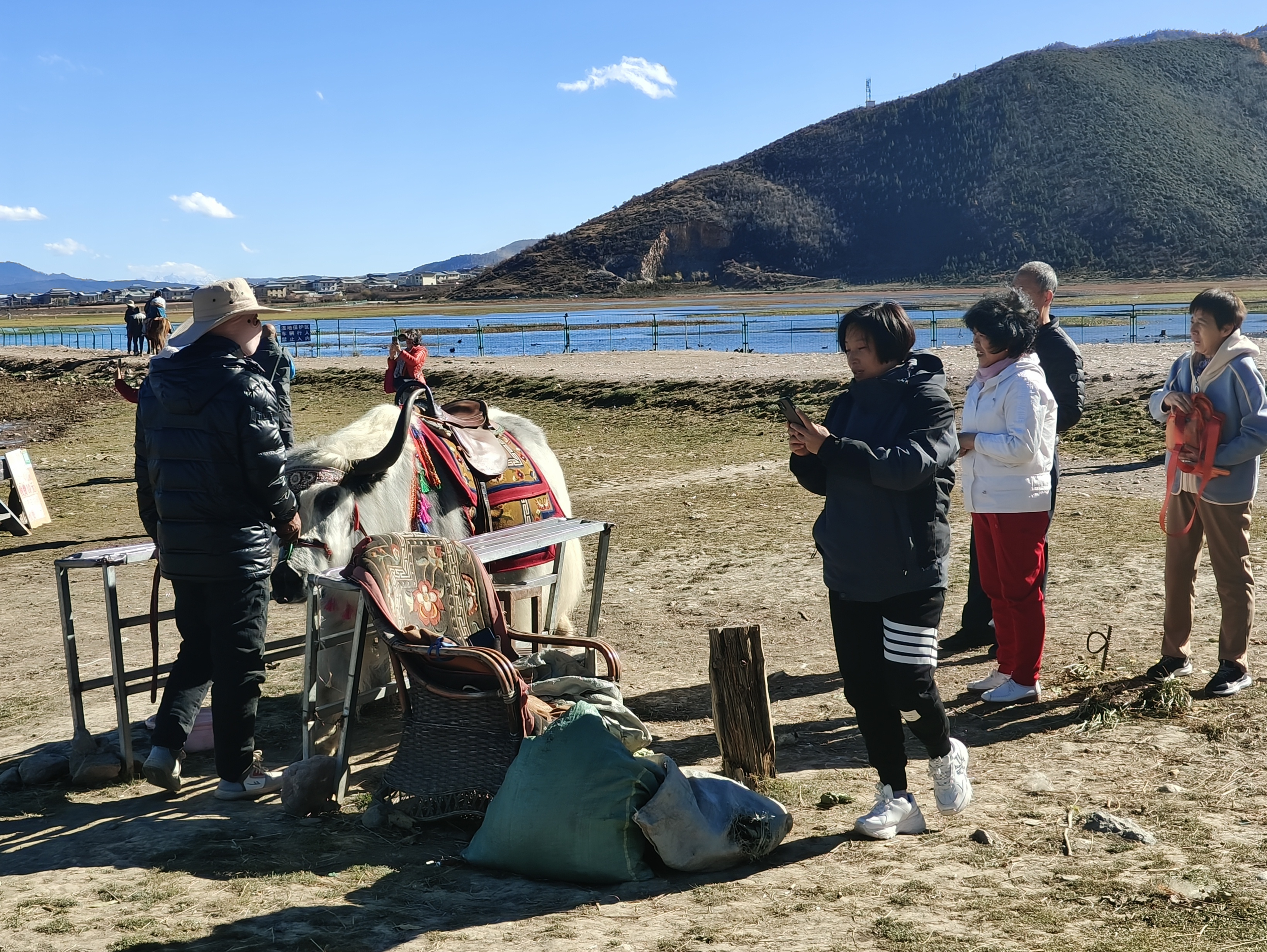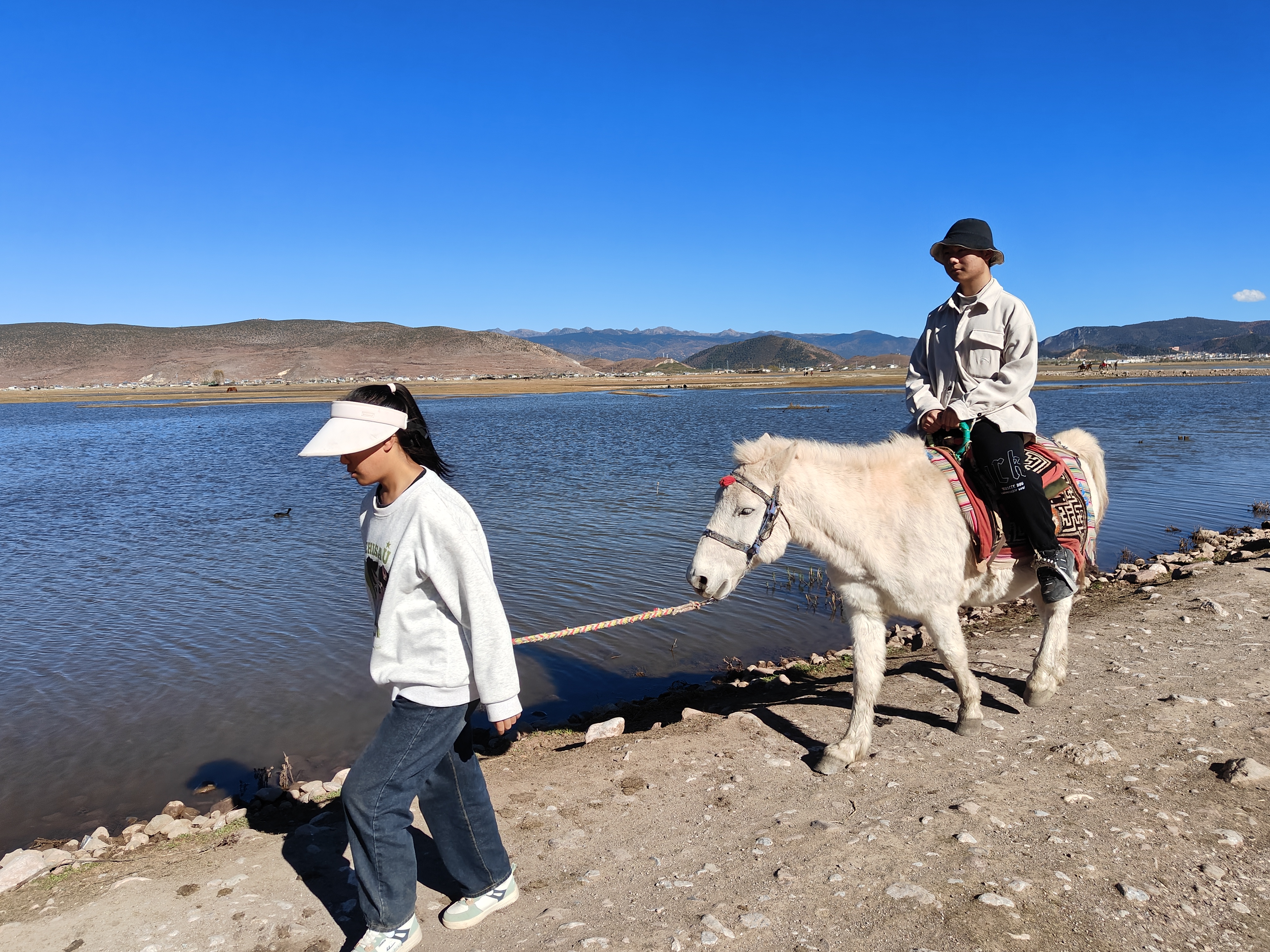 進入11月,迪慶的氣溫雖然持續(xù)下降,但并不影響游客們的游玩熱情。納帕海陽光明媚、碧波蕩漾,不少游客選擇到納帕海環(huán)湖游,騎行的、騎馬的、賞景的、拍照的游客絡(luò)繹不絕。圖為游客在納帕海濕地騎馬,體驗藏族馬背文化魅力。