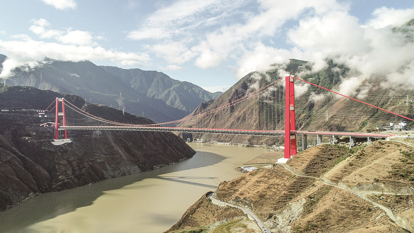 一座座雄偉的大橋飛越天塹,一項項紀錄被頻頻刷新。雅康高速瀘定大渡河大橋(興康大橋)位于瀘定縣瀘橋鎮(zhèn)咱里村,主跨1100米、索塔高188米,索塔頂至水面高差達364米,被譽為“川藏第一橋”。[詳細]