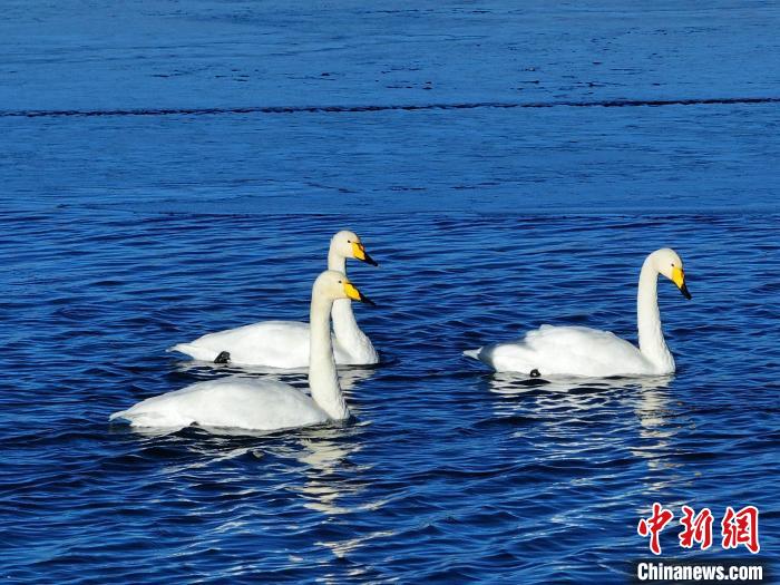 青海越冬大天鵝樂(lè)享“天下黃河貴德清”