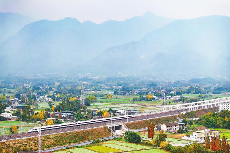 11月23日,試跑動(dòng)車組行駛在綿陽(yáng)市安州區(qū)境內(nèi)。 四川日?qǐng)?bào)全媒體記者 何海洋 攝