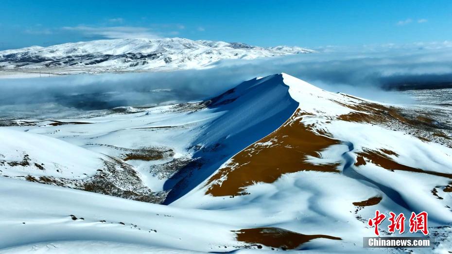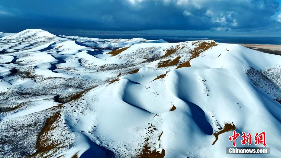 12月中旬,高原青海迎來新一輪寒潮。在青海湖北岸的青海省海北藏族自治州海晏縣,攝影師在金沙灣拍攝到雪落金沙的冬日景色。航拍鏡頭下沙與雪的色彩明暗交錯、波瀾起伏,宛如大自然為大地“咖啡”“拉花”,藍(lán)白交織的純凈讓人心曠神怡。雪后初晴,云河在沙丘間流動,時而隨著氣流“流入”青海湖,沙丘背后的蔚藍(lán)湖水,也讓景色變得奇幻優(yōu)美。青海湖是中國最大的內(nèi)陸高原咸水湖,是維系青藏高原東北部生態(tài)安全的重要水體,也是控制西部荒漠化向東蔓延的天然屏障。