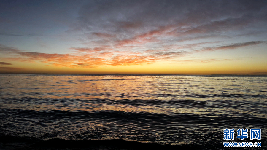 寒冬時(shí)節(jié),青海湖顯露出寧靜內(nèi)斂的一面。清晨,在波浪聲與風(fēng)聲的伴奏下,一輪紅日緩緩升起,將天邊的云染成了彩色,與波光粼粼的湖面相映,宛如一幅絕美的風(fēng)景畫。