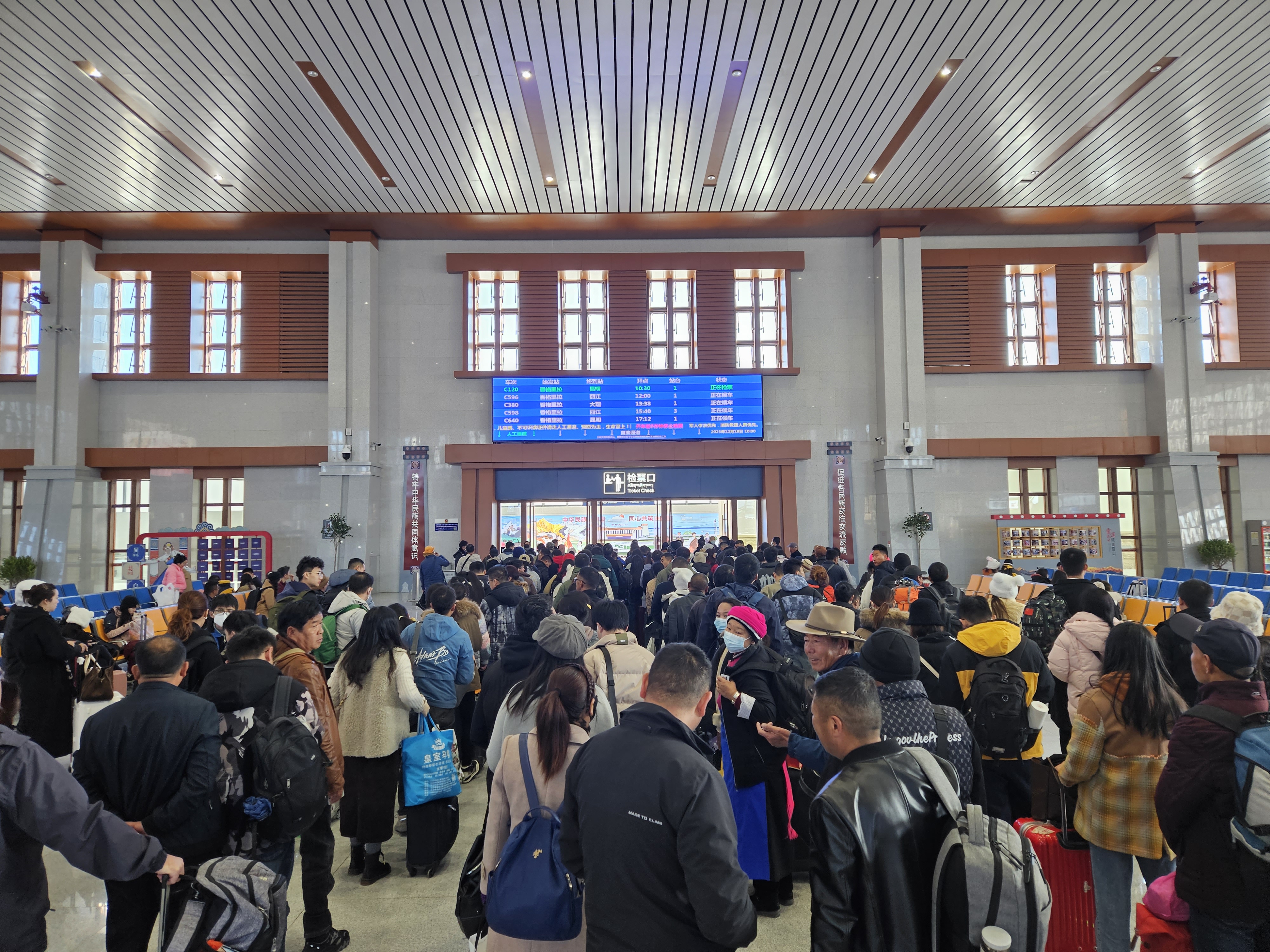 香格里拉站客運員黃浩芯告訴記者,近期香格里拉站客流量維持在發(fā)送2200人左右,到達2100人左右,上座率平均在60%,客票比較充足,廣大旅客可以通過鐵路12306的網(wǎng)站、手機APP代售點、售票窗口以及自助售票機進行購票。針對香格里拉站客流持續(xù)上升情況,香格里拉站在安檢方面,由原來的六個人增派到八個人,售票窗口由原來的一個窗口增加至兩個窗口,同時,每天會安排一些預(yù)備人員提供服務(wù),全力保障旅客的出行,讓旅客有更好的乘車體驗。