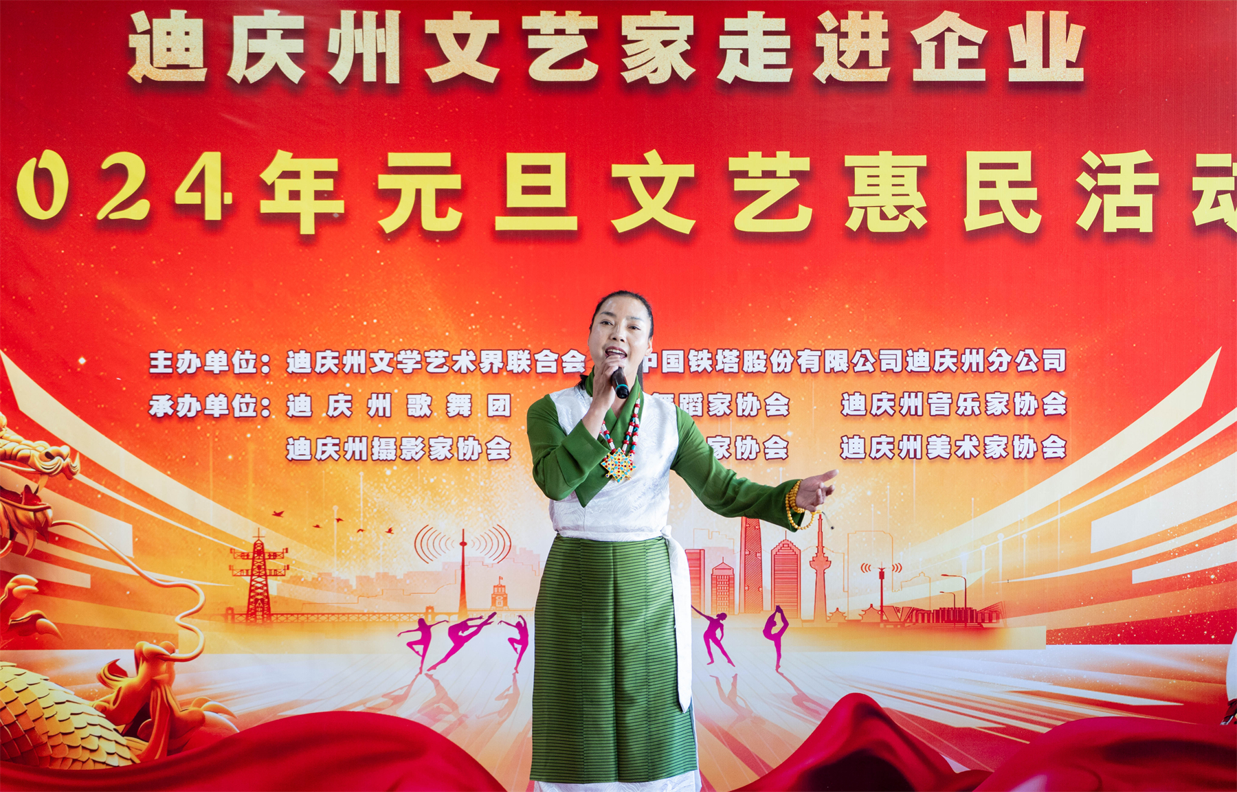 12月27日,迪慶州文聯(lián)組織文藝家走進(jìn)中國(guó)鐵塔股份有限公司迪慶州分公司開(kāi)展2024年元旦文藝惠民活動(dòng)。[詳細(xì)] -