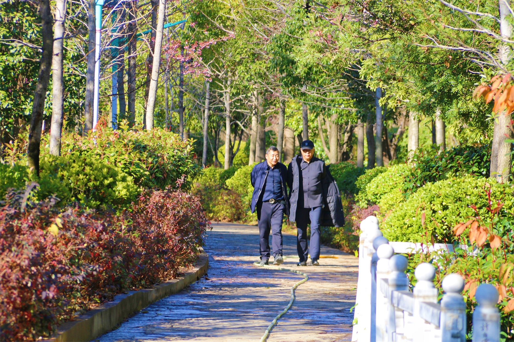 數(shù)九寒天,香格里拉產(chǎn)業(yè)園區(qū)卻是一幅暖冬畫(huà)面,陽(yáng)光和煦,綠樹(shù)成蔭,沿江步道兩側(cè)的一樹(shù)樹(shù)冬櫻開(kāi)滿粉紅的櫻花,蜜蜂穿梭期間,讓人仿佛置身春日。