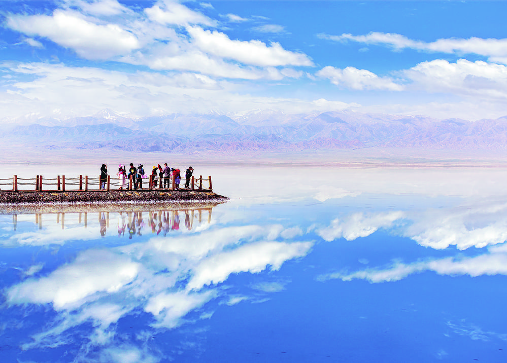 景區(qū)綠化面積達到4.5萬平方米、濕地栽植面積達10.1萬平方米、平整土地16.4萬平方米……隨著一系列措施落地生效,茶卡鹽湖生態(tài)環(huán)境持續(xù)向好,階段性生態(tài)效應正在顯現。徜徉在鹽湖深處——云,觸手可及;水,共天一色,人與自然構成一幅美不勝收的和諧畫卷!