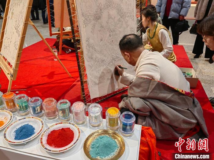 “此次成果展集中展示了熱貢藝術(shù)傳承千年的文化脈絡(luò)與精湛技藝,展現(xiàn)了當(dāng)代熱貢唐卡藝術(shù)的傳承活力與創(chuàng)作實(shí)績(jī)。除展品外,觀眾還可以觀看熱貢壁畫(huà)數(shù)字化展示和專(zhuān)題紀(jì)錄片,更加深入了解熱貢藝術(shù)?!敝袊?guó)非物質(zhì)文化遺產(chǎn)館副館長(zhǎng)、展覽策展人王輝說(shuō)。