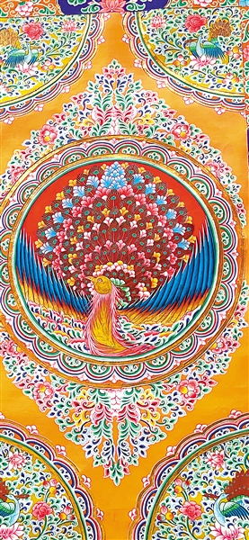 建筑彩繪作品《吉祥孔雀》。 夏吾更太 繪