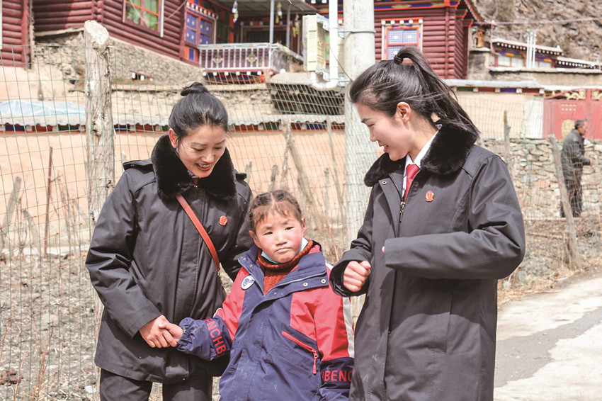 “正義雪蓮”女子審判團隊成員走訪關(guān)心孩子。