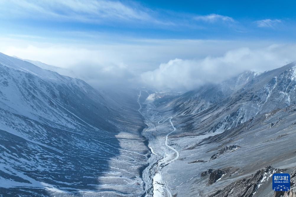 這是1月23日在青海省海北藏族自治州門(mén)源回族自治縣境內(nèi)拍攝的崗什卡雪峰(無(wú)人機(jī)照片)。新華社記者 耿輝凰 攝