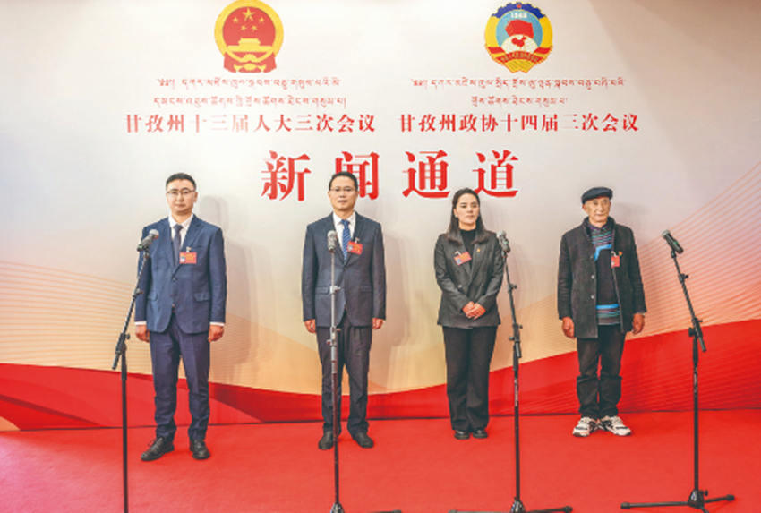 1月30日下午,甘孜州十三屆人大三次會議“代表通道”正式開啟。瀘定縣委副書記、縣長王蕾,得榮縣日雨鎮(zhèn)黨委書記江潔,亞丁景區(qū)管理局游客服務(wù)科科長余光榮,瀘定縣磨西鎮(zhèn)青岡坪村支部書記、村委會主任呂東才四位州人大代表在現(xiàn)場回應(yīng)社會關(guān)切熱點。