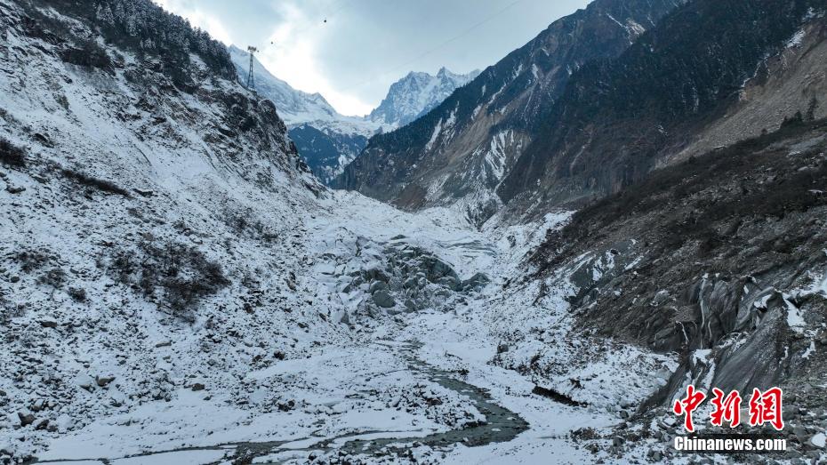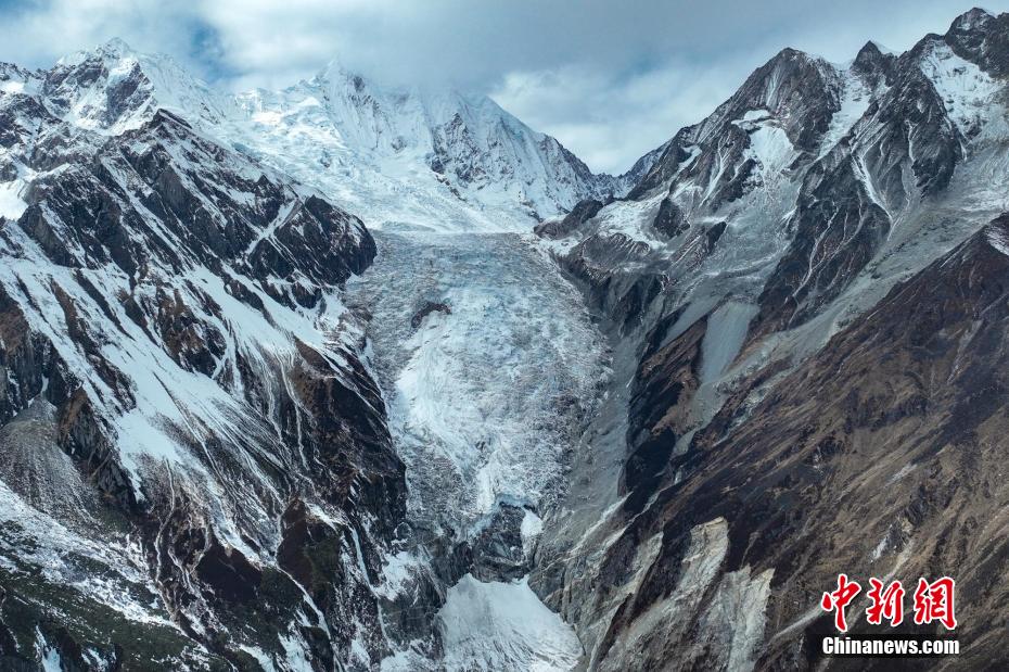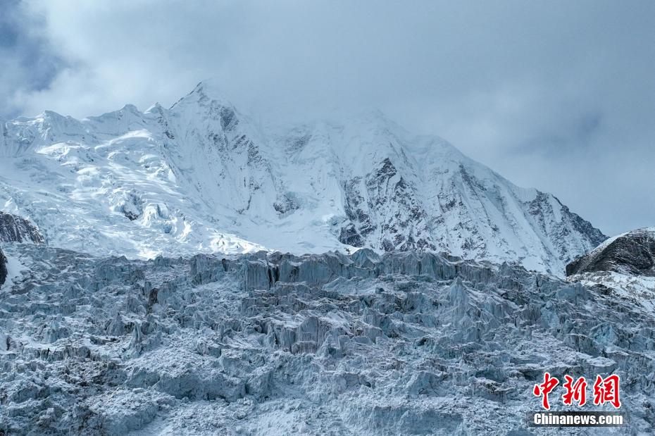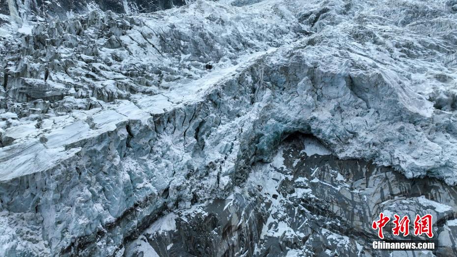 2月2日,四川省甘孜藏族自治州瀘定境內(nèi),一場(chǎng)雪后的貢嘎山披上了厚厚的“白紗”,在貢嘎山東坡順山而下的冰川沿海螺溝山谷綿延10多公里,就像一條“巨龍”盤在山谷中,十分壯觀。貢嘎山坐落于橫斷山系大雪山中段,主峰海拔7756米,被譽(yù)為蜀山之王。海螺溝冰川也是貢嘎山數(shù)十條冰川中規(guī)模最大、形態(tài)最美的一條。經(jīng)歷了2022年“9·5”瀘定地震后,海螺溝景區(qū)道路等重建工作完成,步游道、旅游服務(wù)設(shè)施升級(jí),游客逐步回升。航拍鏡頭下的海螺溝冰川粒雪盆下端的“冰川冰”。記者 劉忠俊 攝
