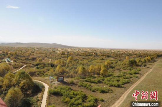 資料圖為航拍海南州貴南縣黃沙頭防沙治沙“綠進(jìn)沙退”。海南州委宣傳部供圖