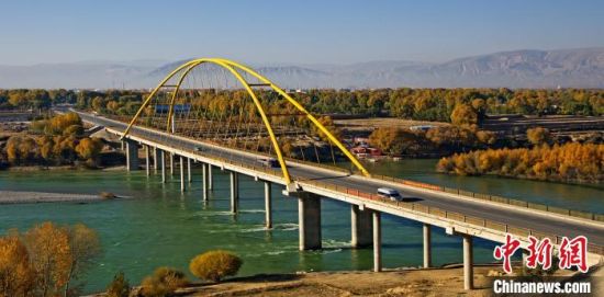 資料圖為航拍海南州貴德縣境內(nèi)黃河大橋。海南州委宣傳部供圖