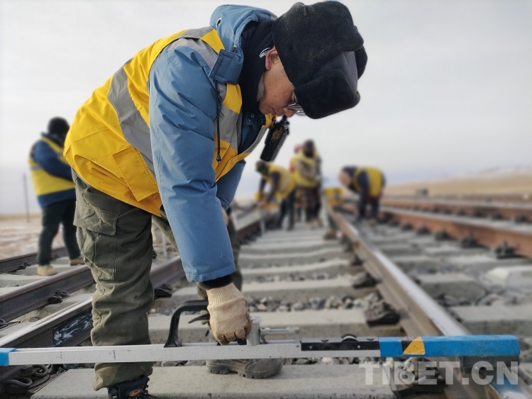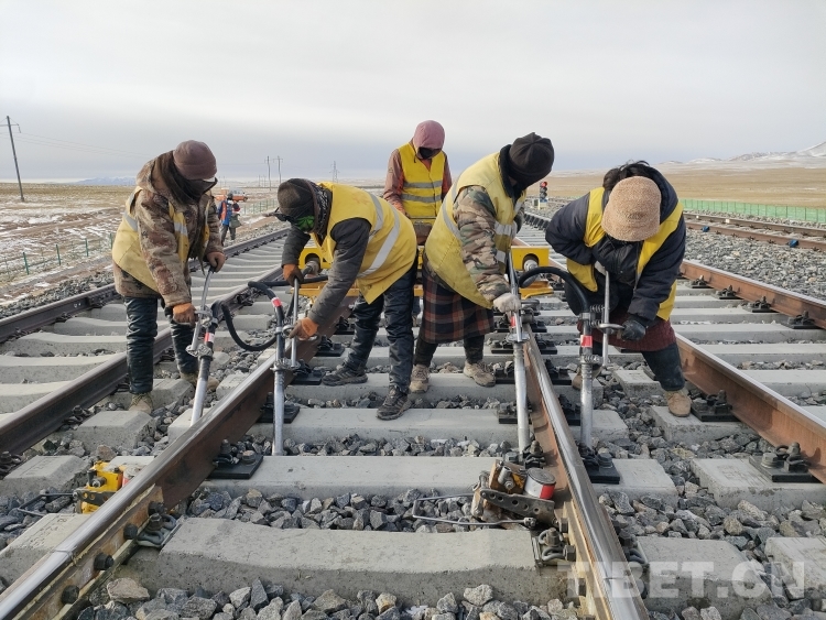 中國西藏網(wǎng)訊 2月9日,大年三十,中國鐵路青藏集團(tuán)有限公司格爾木工務(wù)段沱沱河線路車間通天河線路工區(qū)的10名職工驅(qū)車1小時來到青藏鐵路塘崗站,對鐵路線路設(shè)備病害進(jìn)行整治。