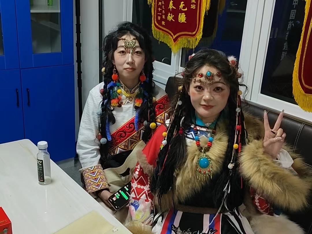 1月30日下午17時(shí)20分許,服務(wù)站迎來兩位身著藏式服裝的“卓瑪”。經(jīng)隊(duì)員了解得知,兩位“卓瑪”是外地過來旅游的,準(zhǔn)備到寺院內(nèi)部去旅拍,手上的包實(shí)在太重了,希望可以把包寄存在服務(wù)站內(nèi)。隊(duì)員立即接過她們手中的包將其安置好,并細(xì)心問到包內(nèi)是否有貴重物品之類的,確定好包內(nèi)的物品后便向他們說道:“兩位小姐姐,你們就安心去拍攝吧,不著急,拍完后回到這里取你們的東西就可以了,我們給你們守著。”隨后兩位來自遠(yuǎn)方的“卓瑪”便開始了他們愉快的旅拍。其實(shí)大家都知道,這場旅拍沒有1個(gè)小時(shí)是不可能結(jié)束的,而這個(gè)點(diǎn)也快接近了隊(duì)員們歸隊(duì)吃晚飯的時(shí)間點(diǎn)了,但是隊(duì)員們沒有考慮吃飯的事,他們想的只是為素不相識的遠(yuǎn)方朋友盡一份義務(wù),讓他們的旅拍之行無后顧之憂。19時(shí)30分左右,兩位“卓瑪”回到了服務(wù)站,隊(duì)員隨即邀請他們坐下來休息會喝杯熱水,夜晚天氣較冷讓他們先烤會火暖一下身子再出發(fā)。