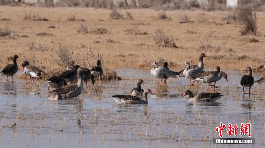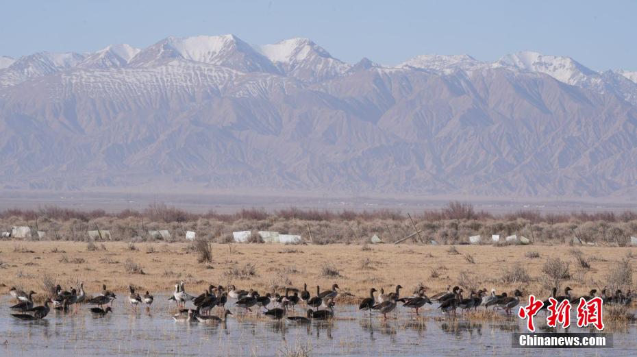 近日,隨著天氣轉(zhuǎn)暖,在青海省柴達(dá)木盆地,大批國家二級重點(diǎn)保護(hù)野生動(dòng)物灰鶴聚集于都蘭縣巴隆鄉(xiāng)。此外,野生天鵝、斑頭雁、黃鴨、赤麻鴨等鳥類也聚集于此,或展翅高飛,或覓食嬉戲,在候鳥遷徙季勾勒出一幅山水靜好、飛鳥翔集的美麗生態(tài)畫卷。