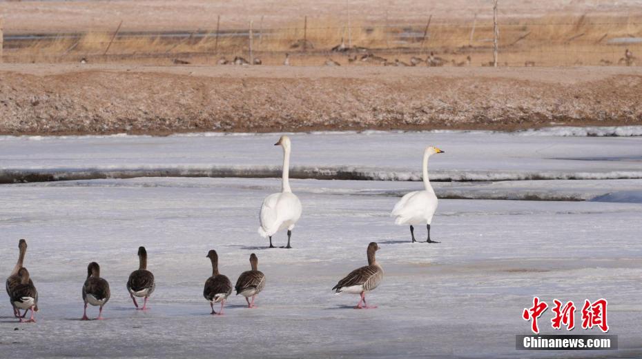 青海:野生大天鵝群在黃河越冬 高原冬日添靚景