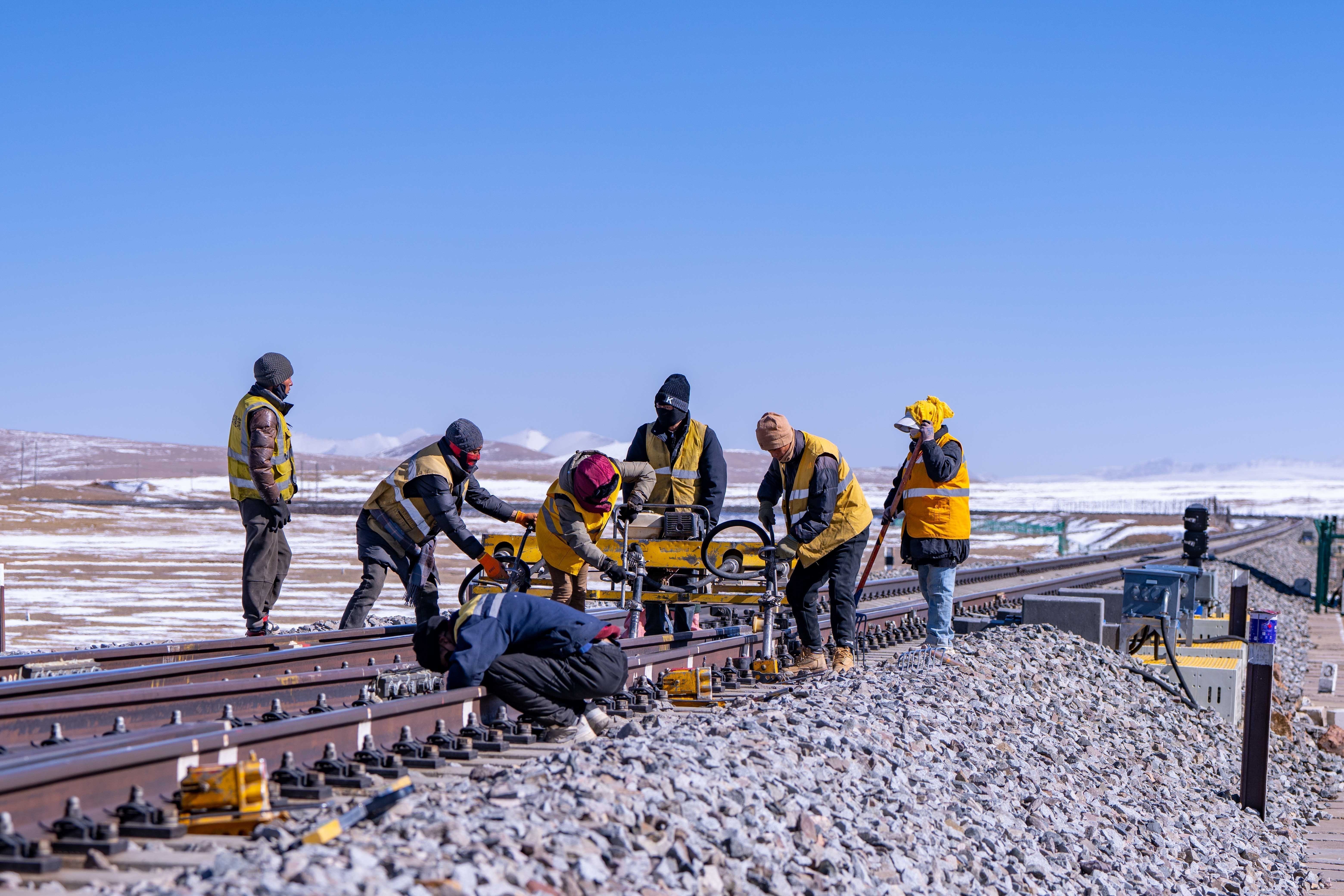 清早,又是一個鐵路的天窗。坐上車,馬祎俊又像往常一樣帶著工人們出發(fā)了——這次他們的目標是唐古拉山區(qū)域。