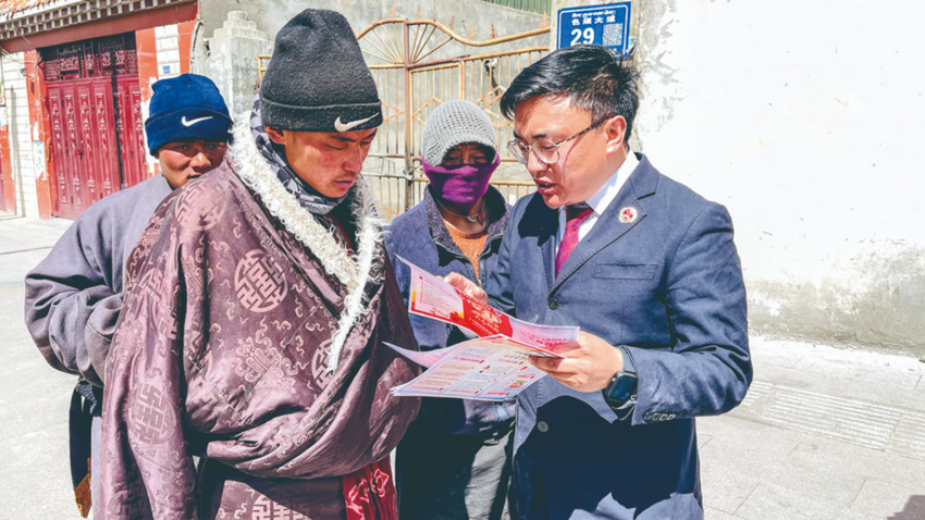 活動(dòng)中,該院首先召集了色須鎮(zhèn)社區(qū)干群在社區(qū)黨員活動(dòng)室開(kāi)展法治宣講活動(dòng),雙語(yǔ)宣講員重點(diǎn)圍繞檢察院職能職責(zé)、《中華人民共和國(guó)國(guó)家安全法》《中華人民共和國(guó)反間諜法》《中華人民共和國(guó)網(wǎng)絡(luò)安全法》《中華人民共和國(guó)個(gè)人信息保護(hù)法》等相關(guān)法律,并結(jié)合真實(shí)案例向群眾釋法說(shuō)理,號(hào)召群眾牢固樹(shù)立總體國(guó)家安全觀,切實(shí)提高全民共同維護(hù)國(guó)家安全的責(zé)任感。隨后,檢察干警來(lái)到色須鎮(zhèn)商業(yè)街向過(guò)往群眾發(fā)放涉及國(guó)家安全方面的宣傳手冊(cè)和宣傳單,此次普法宣傳活動(dòng),共計(jì)發(fā)放宣傳手冊(cè)、宣傳單100余份。