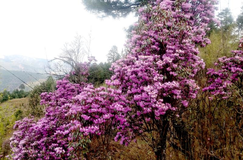 4月底以來,香格里拉杜鵑花進(jìn)入盛開期。在虎跳峽鎮(zhèn)紅旗村至小中甸鎮(zhèn)的國(guó)道214線沿線,漫山遍野的杜鵑花把一座座山頭裝扮得如詩(shī)如畫,讓人流連忘返。