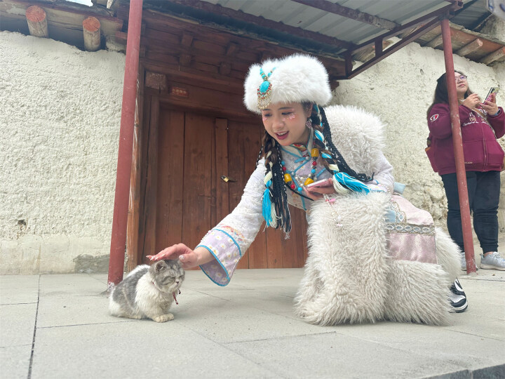 在景區(qū)內(nèi),隨處可見身穿藏族服飾、化上高原紅曬傷妝的游客們變身“扎西和卓瑪”,攝影師圍著她們忙前忙后,快門聲此起彼伏?!班?,好”“就是這樣,保持笑容”“下巴揚(yáng)起來”……在攝影師的引導(dǎo)下,““扎西和卓瑪””變換著姿勢,拍下一張張景區(qū)打卡照。