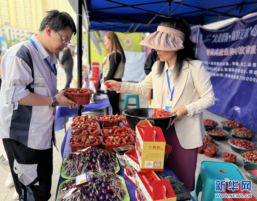 農(nóng)畜產(chǎn)品展示區(qū)的青海特色產(chǎn)品。新華網(wǎng) 魚昊 攝