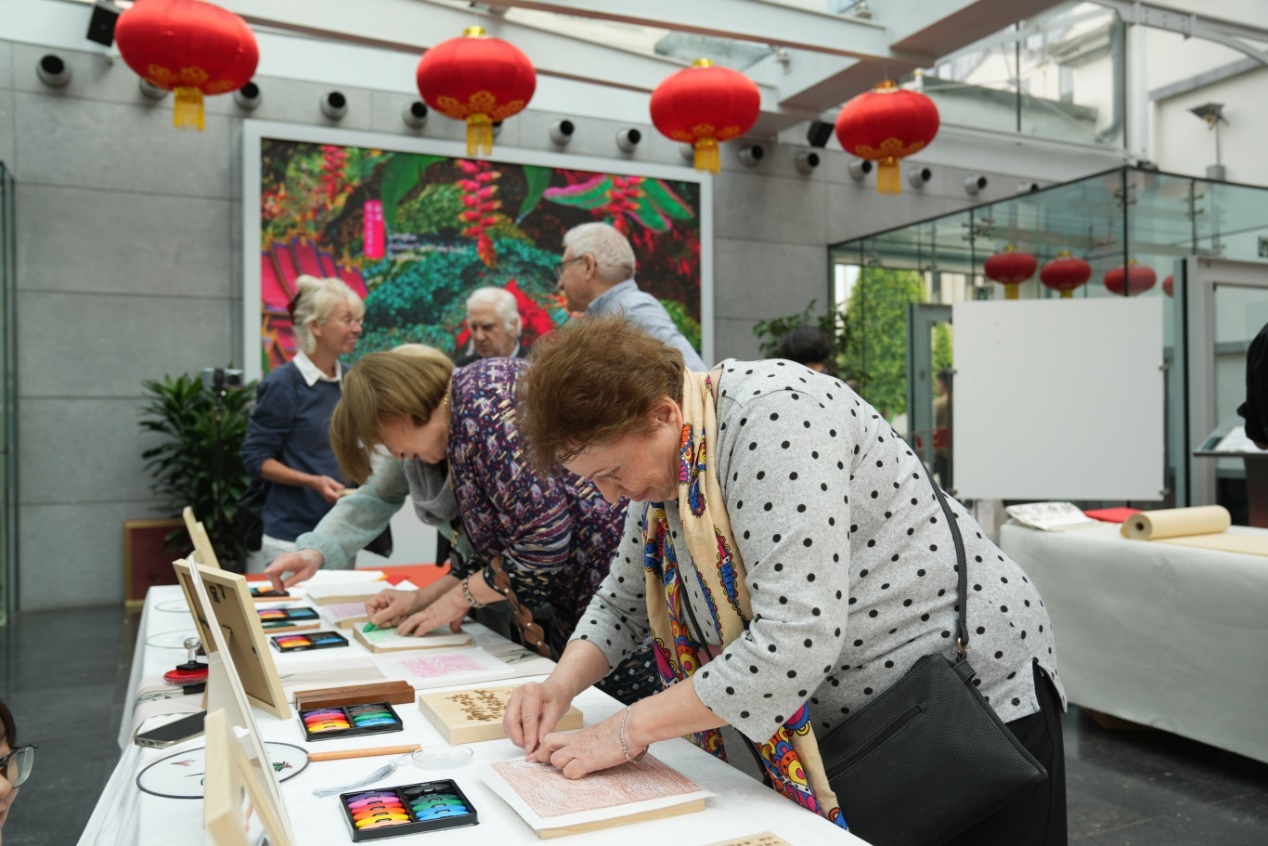 有著1800多年歷史的傳拓,堪稱“中國最古老的印刷術”,是一種重要的文物保護和古籍修復技術。發(fā)展至今,已從拓金石發(fā)展為萬物可拓;從拓文字、圖案發(fā)展為全形拓。為讓歐洲民眾近距離感受傳拓的獨特魅力,昆明市非物質文化遺產(chǎn)傳承人張衡特別創(chuàng)作集立體拓、書法、篆刻等多種藝術形式為一體的“普洱茶拓”,并定制“云騰四?!ぼ鴦犹煜隆薄安桉R古道”等拓版供嘉賓體驗。