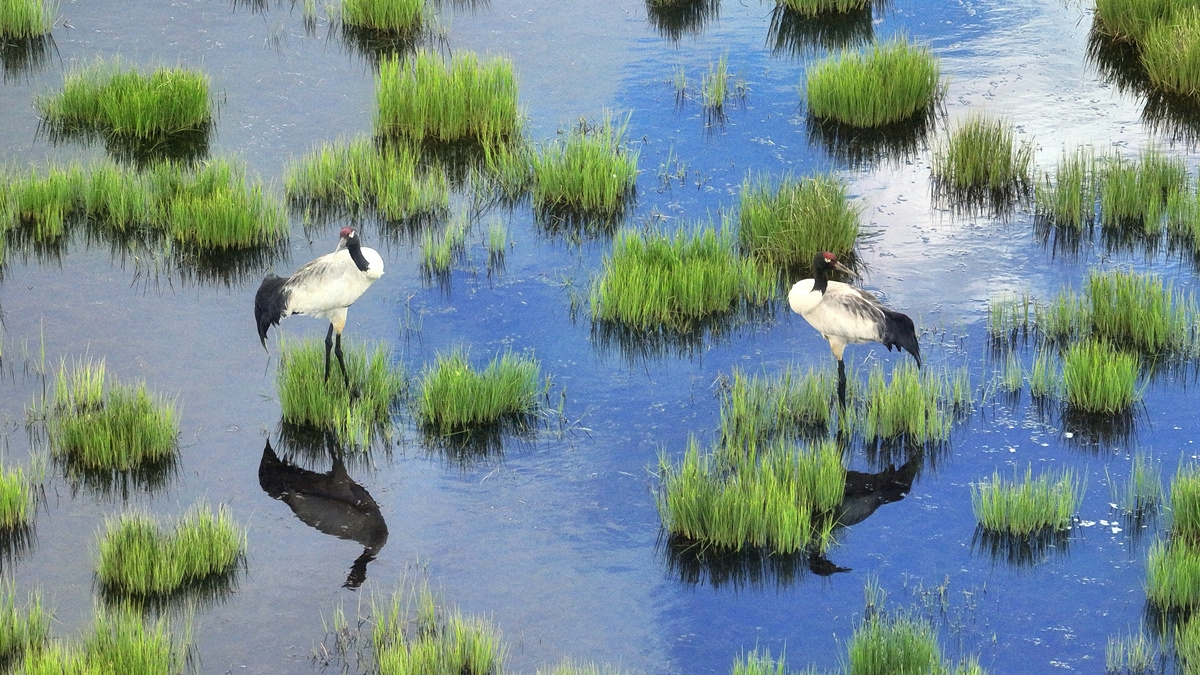 黑頸鶴進(jìn)入繁育高峰期。羅爾吾占登 攝