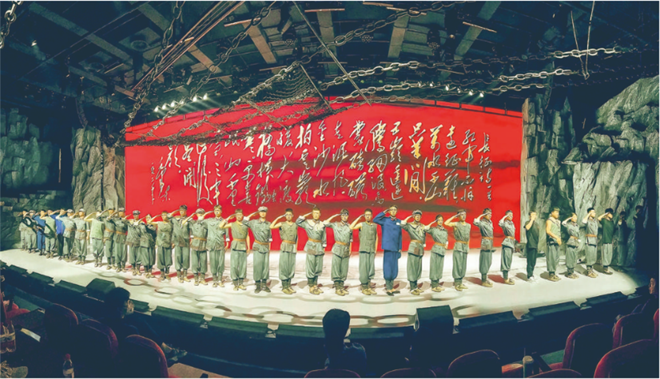 圖為大型原創(chuàng)舞臺(tái)劇《飛奪瀘定橋》演出現(xiàn)場(chǎng)。
