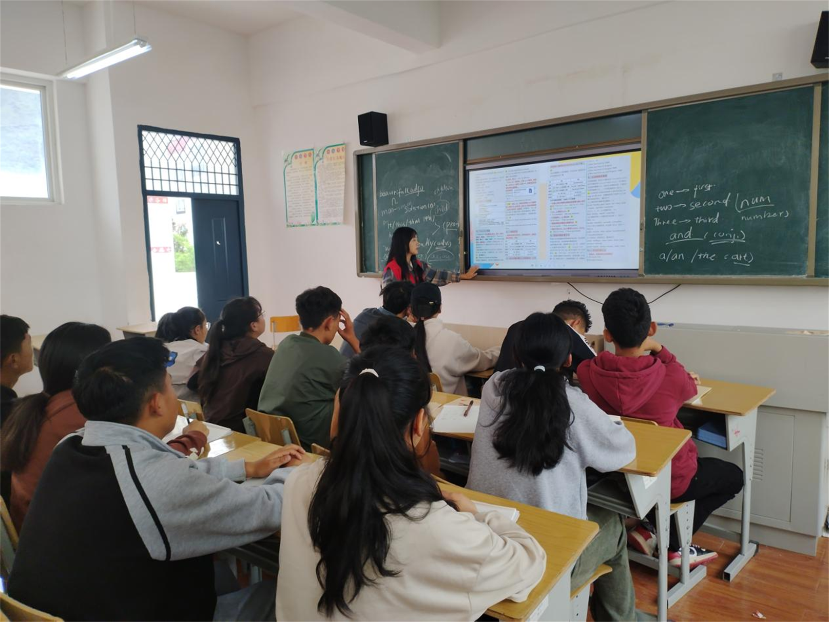 圖為志愿者正在為學(xué)生們輔導(dǎo)英語(yǔ)。