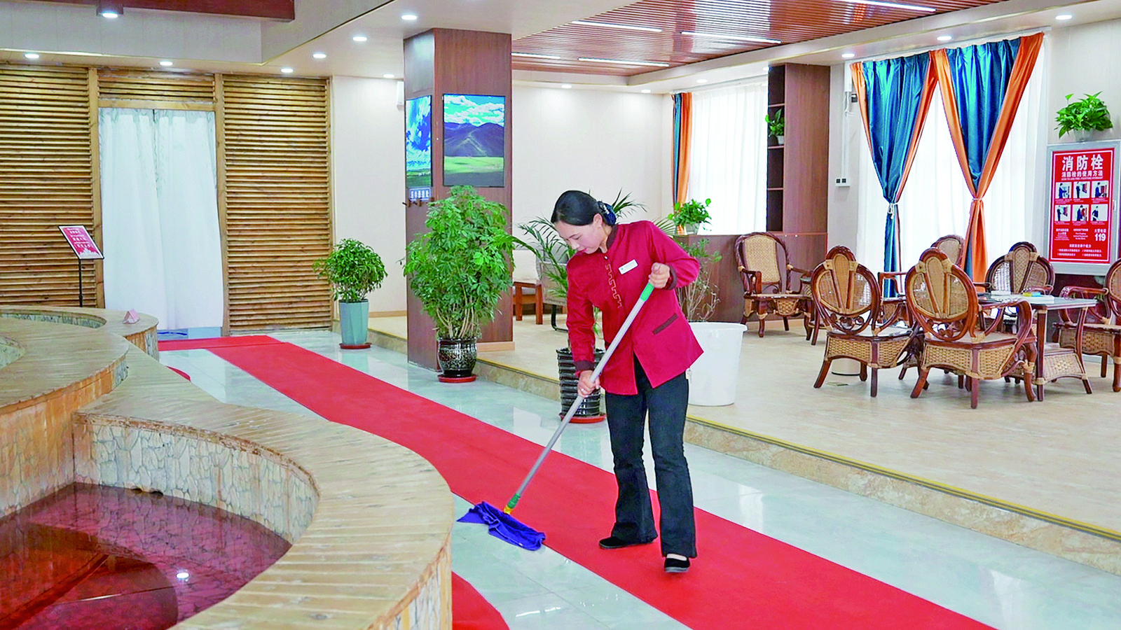 “溫泉酒店2021年建成投運(yùn),去年承包給第三方經(jīng)營(yíng),年底村集體增收66萬(wàn)元。”達(dá)玉村黨支部書(shū)記昂秀拉夫旦說(shuō),今年初村集體又投入75萬(wàn)元,用于溫泉酒店基礎(chǔ)設(shè)施改造和管道改造,并從今年開(kāi)始由村集體成立的公司經(jīng)營(yíng)管理。
