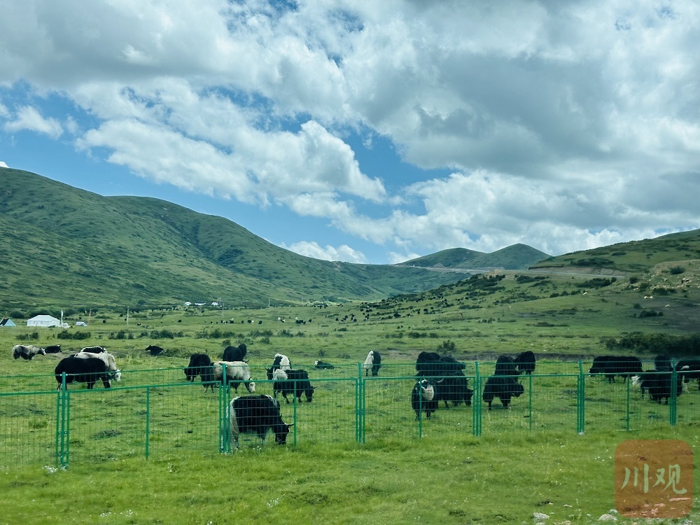 藍(lán)天白云下,綠蔭草場上,成群的牦牛像“黑珍珠”一般點(diǎn)綴在“綠色”海洋里。記者一行來到了“牦牛之鄉(xiāng)”紅原縣,這里是阿壩州唯一的純畜牧業(yè)縣。紅原縣現(xiàn)有天然草原面積755.88萬畝,畜牧業(yè)為當(dāng)?shù)匕傩諑硎找娴耐瑫r(shí),也對生態(tài)環(huán)境保護(hù)提出了挑戰(zhàn)。