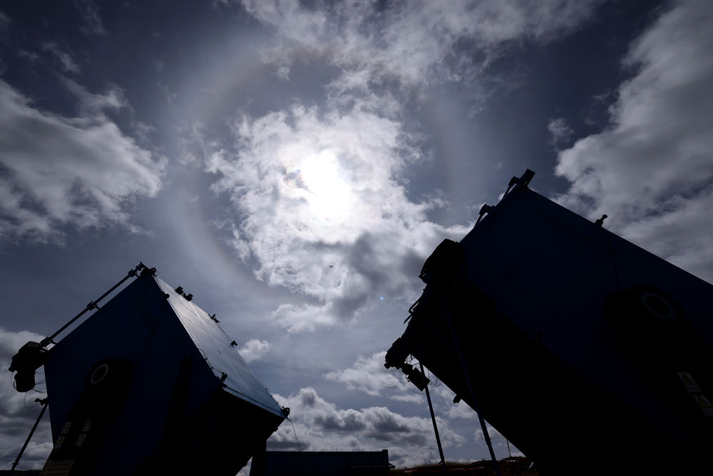 2023年4月22日,廣角切倫科夫望遠鏡上空出現(xiàn)日暈。新華社記者 金立旺 攝