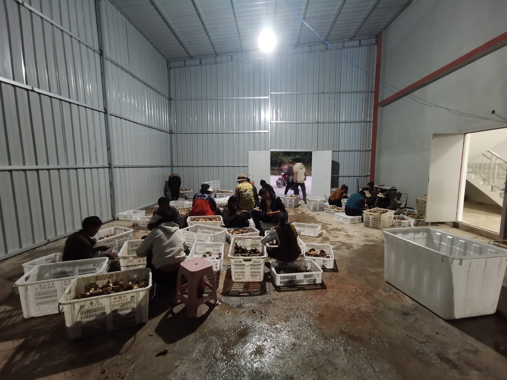 德西村的菌類加工車間內(nèi),工人們?cè)谶M(jìn)行初步分揀。受訪者供圖