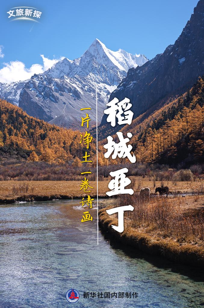 秋日稻城亞丁景區(qū)的雪山、草甸和河流。新華社記者 薛晨 攝