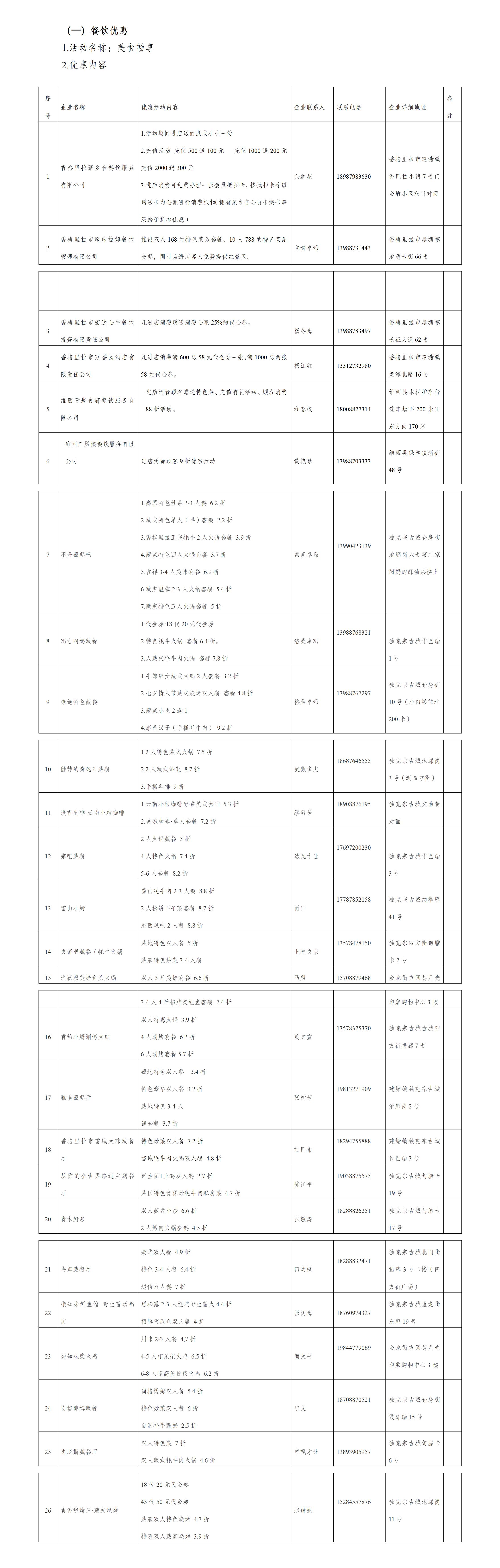 為熱烈迎接香格里拉的冬季旅游市場消費客群,迪慶商務(wù)部門在動車開通一周年之際特別推出一系列“吃、住、購”的優(yōu)惠政策。6家線上特色餐飲企業(yè)及20家古城精選餐飲業(yè)將提供2.2折至9.2折的超值優(yōu)惠,同時發(fā)放各類優(yōu)惠券;19家優(yōu)質(zhì)線上住宿企業(yè)及州內(nèi)百余家民宿將提供8折至8.5折的住宿優(yōu)惠;10余家迪慶特色產(chǎn)品的生產(chǎn)銷售企業(yè)推出滿減折扣優(yōu)惠、享受贈品的優(yōu)惠福利,讓廣大游客樂游香格里拉提升旅游體驗。