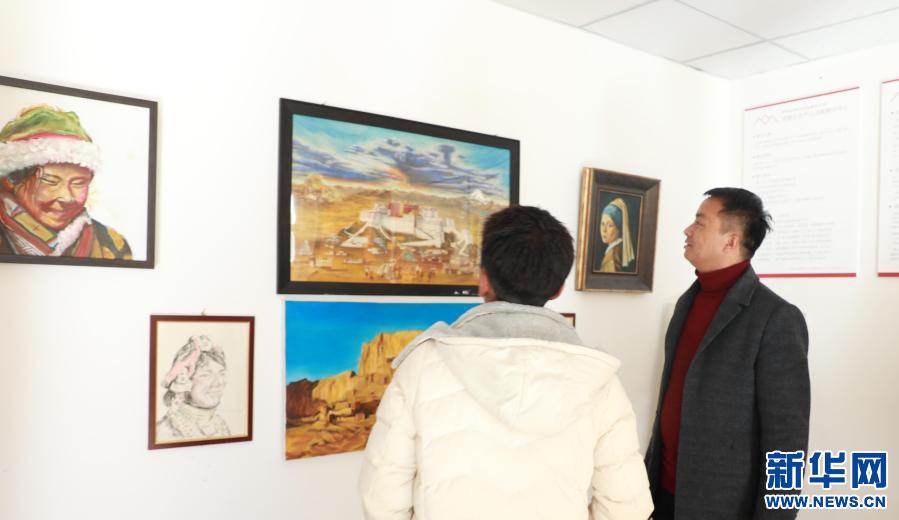 觀眾參觀本地藝術(shù)創(chuàng)業(yè)工作室。洛隆特色產(chǎn)業(yè)戰(zhàn)略孵化中心供圖,新華社發(fā)。