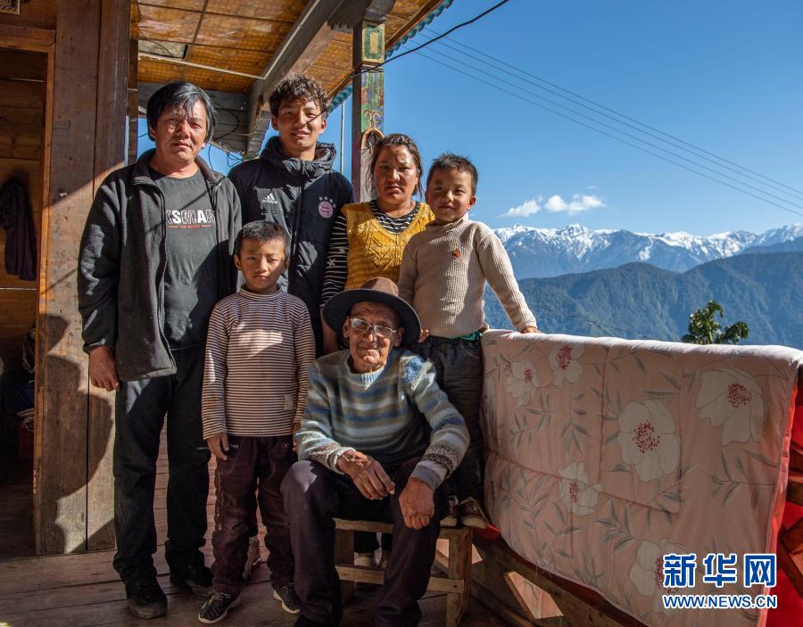 在位于西藏林芝市墨脫縣德興鄉(xiāng)巴登則村的家中,旺前羅布一家人合影留念(2月9日攝)。新華社記者 孫非 攝